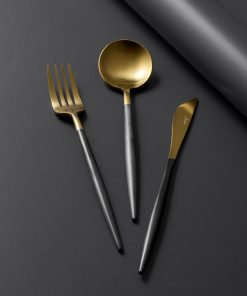 Jumbo Colors 30 Parça Çatal Kaşık Bıçak Seti Siyah Mat Altın