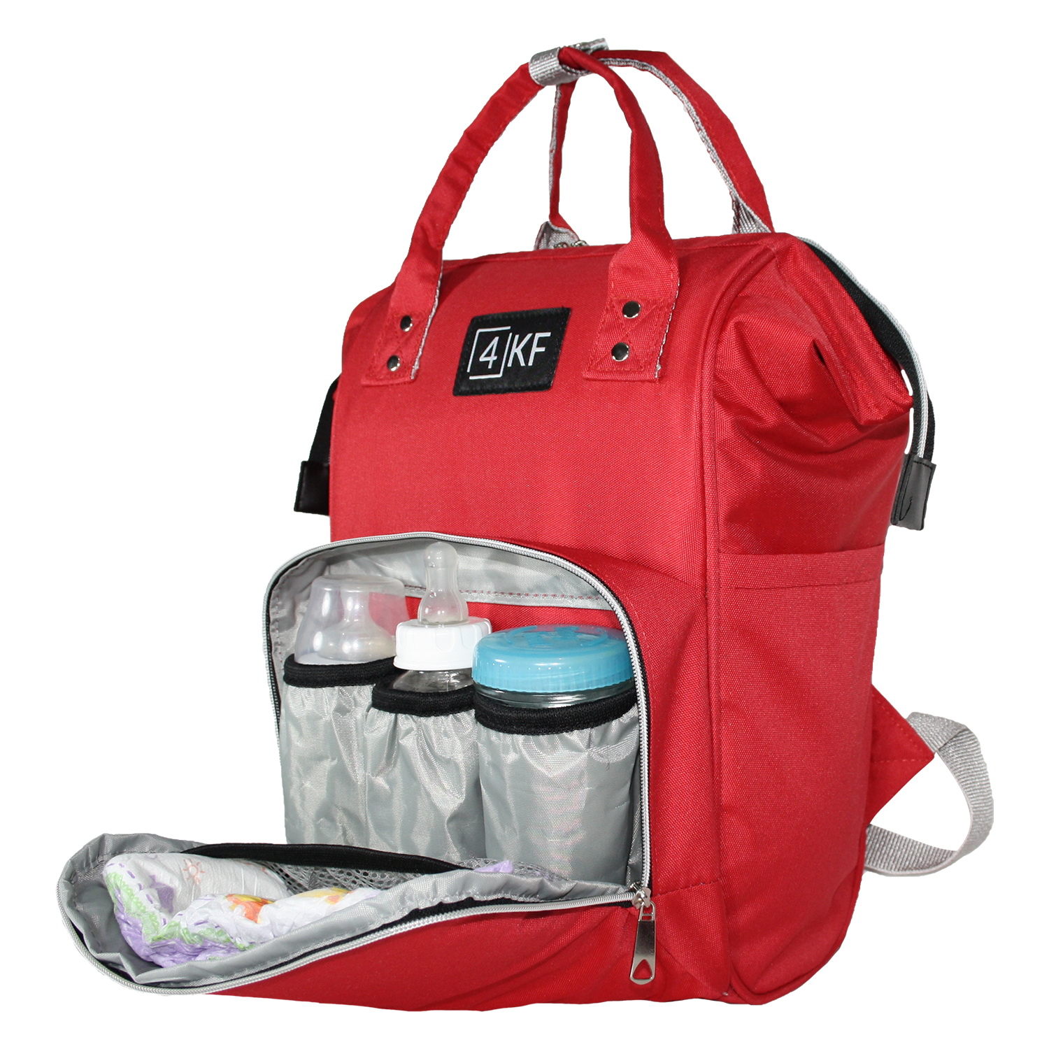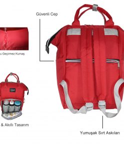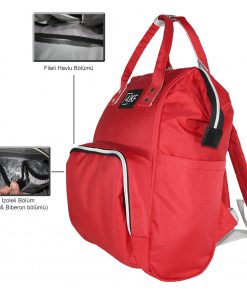4KF Anne Bebek Bakım Sırt Çantası Fonksiyonel Su Geçirmez Çanta Kırmızı