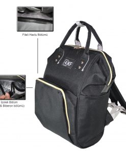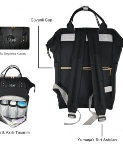 4KF Anne Bebek Bakım Sırt Çantası Fonksiyonel Su Geçirmez Çanta Siyah