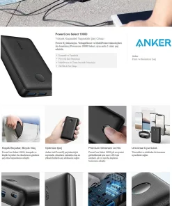 Anker 10000 mAh Powerbank Taşınabilir Hızlı Şarj Cihazı PowerCore Select – PowerIQ 12W+10W Çift Çıkışlı Powerbank – Siyah – A1223 (Anker Türkiye Garantili) ean : 0848061060164