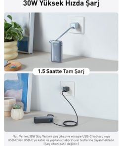 USB-C Kablosu: Maksimum 30W (5V⎓3A / 9V⎓3A / 10V⎓2.25A / 12V⎓2.5A / 15V⎓2A / 20V⎓1.5A)