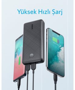 Anker' in PowerIQ yüksek hızlı şarj teknolojisine sahip çift şarj portu, aynı anda iki cihazı şarj etmenizi sağlar.