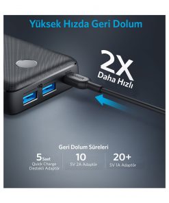 Anker PowerCore Select 20000 mAh Taşınabilir Hızlı Şarj Cihazı PowerIQ 2.0 18W Çift Çıkışlı Powerbank Siyah ean : 848061025286
