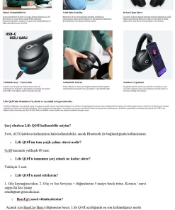 Kutunun İçinde Neler Var: Life Q10i Kulak Üstü Kulaklık, USB-C Kablosu ve Yardımcı Kablo., %100 Daha Fazla Bas: 40 mm geniş titanyum sürücüler, gerçek zamanlı bir Bas arttırma algoritması olan özel BassUp teknolojimiz ile uyum içinde çalışır. Bir araya gelen bu özellikler sayesinde bas çıkışı iki kat daha yüksek olur., Katlanabilir Tasarım: Kolayca saklayıp yanınızda taşıyabilmeniz için düzgünce katlanır. Güçlendirilmiş menteşeler, yüksek dayanıklılık ve güvenirlilik sunar., Hi-Res Ses: Life Q10i, en zengin dinleme deneyimini sunmak için 40 kHz değerine kadar ses verir. Hi-Res Ses logosu ile onaylanmış olan kulaklık, seslerin tam olarak sanatçı ve prodüktörün istediği şekilde verilmesini sağlar., 3 Kat Daha Uzun Çalma Süresi: Anker'in dünyaca ünlü güç yönetim teknolojisi ve düşük güç tüketen Bluetooth çipi sayesinde Life Q10i 60 saate varan çalma süresi sunar. Her gün 2 saat çalma süresiyle kulaklık tam bir ay kullanılabilir., 5 Dakika Şarj = 5 Saat Çalma Süresi: Aceleniz olduğunda bile düşük pil sıkıntısı yaşamazsınız. Yüksek hızlı USB-C şarj bağlantı noktası üzerinden kulaklığınızı şarj edin. Rahatlığın ve uyumluluğun tadını çıkarın.
