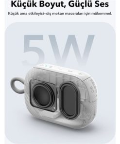 Tek bir şarjla 20 saate kadar kesintisiz müziğin keyfini çıkarın, uzun açık hava maceraları ve tüm gün süren etkinlikler için mükemmel. Kompakt boyutuna rağmen bu Bluetooth hoparlör, 5W çıkış gücüyle güçlü ve etkileyici bir ses sunar, net ve dinamik bir ses performansı sağlar.