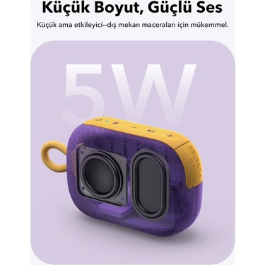 Tek bir şarjla 20 saate kadar kesintisiz müziğin keyfini çıkarın, uzun açık hava maceraları ve tüm gün süren etkinlikler için mükemmel. Kompakt boyutuna rağmen bu Bluetooth hoparlör, 5W çıkış gücüyle güçlü ve etkileyici bir ses sunar, net ve dinamik bir ses performansı sağlar.