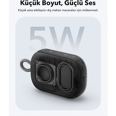 Tek bir şarjla 20 saate kadar kesintisiz müziğin keyfini çıkarın, uzun açık hava maceraları ve tüm gün süren etkinlikler için mükemmel. Kompakt boyutuna rağmen bu Bluetooth hoparlör, 5W çıkış gücüyle güçlü ve etkileyici bir ses sunar, net ve dinamik bir ses performansı sağlar.