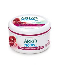 Arko Nem Meyveli Bakım Kremi (Nar Üzüm) 300ml, yüzde 100 doğal nar ve kırmızı üzüm özleriyle zenginleştirilmiş formülüyle, cildinizin güçlenmesine ve beslenmesine yardımcı olur. Cotton 24 Complex içeren özel formülüyle de cildinizi 24 saat boyunca nemlendirir ve pamuksu bir yumuşaklık sağlar.
