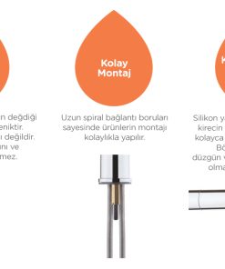 - Kireçlenmeye karşı kolay temizlik: silikon yapısı sayesinde, biriken kirecin ufak bir el hareketiyle kolayca temizlenmesini sağlar; böylece su akışının düzgün ve ürünün uzun ömürlü olmasına olanak sağlar