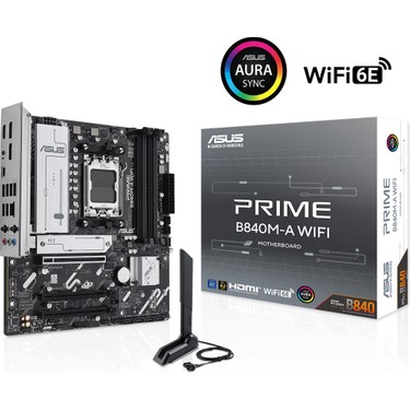 Asus Prime B840M-A Wıfı Amd B840 Am5 Ddr5 7600 2xdp HDMI 3x M2 Usb3.2 Wifi 6e + Bt Aura Rgb 2.5gbit Lan Matx