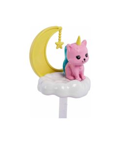 Barbie Dreamtopia Chelsea Oyun Alanı her şey mümkün! Chelsea bebeğin üzerinde yıldız desenli parlak renkli bir eteği, tek boynuzlu tacı ve bir kuyruğu vardır. Çeşit çeşit hikayeye ilham veren üç farklı oyun alanı bulunur: salıncaklı bir çardak, bulut şeklinde ışıltılı bir bank ve kendine ait çok katlı kulesiyle dünya tatlısı 'tek boynuzlu kedi'. Bebek tek başına ayakta duramaz. Renkler ve süslemeler çeşitlilik gösterebilir. Chelsea bebeği, masalsı aksesuarları ve ilginç kedisi olan bu şirin Barbie® setiyle çocuklar bulutların üzerinde oyunlar oynayabilir. Chelsea bebek pembe masalsı saçları, tek boynuzlu tacı ve çıkarılabilen kuyruğuyla büyülü bir enerji yayıyor. Ayrıca camgöbeği renginde bir korse, yıldızlı mor bir etek, pastel tonlu bir tayt ve ipli sandaletler giyiyor. Rüya gibi çardakta sandalyede sallanıp bulutların üzerinde süzülün veya bulut şeklindeki bankta oturup kayan yıldızlara karşı dilek tutun. Çocuklar kedi yavrusuyla ilgilenerek bakım oyunu oynayabilir. Pembe kürkü ve tek boynuzuyla bu fantastik kediciğin pek çok üretken hikayeye ilham olacağından emin olabilirsiniz. Kediciğin bulutlardan esinlenilerek tasarlanmış oyun kulesi iki katlıdır ve ucunda sallanan yıldız olan bir hilal bulunur. Çeşit çeşit üretken hikayeyi teşvik eden bu Barbie oyun seti 3 yaş ve üzeri çocuklar için ideal bir hediyedir. Kutu ölçüsü: 24 x 20 x 9 cm