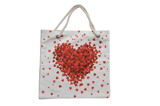 Bez Çanta Plaj Çantası Alışveriş Bez Torbası İpli Dijital Baskı Renkli Kalpten Dolu Kalpler Lv28