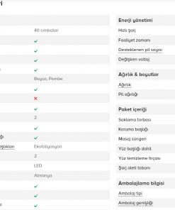 - 50 dakikaya kadar kablosuz kullanım. Epilasyon cihazı yumuşak bir şekilde yüz kıllarını temizler, üç yüz fırçası başlığı cildi temizler ve peeling yapar.