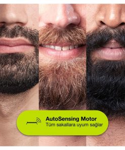 Braun’un yenilikçi AutoSensing Teknolojisi sakalınızı saniyede 13 kez algılar ve her türlü sakal tipine zahmetsiz şekillendirme sağlamak için şekillendirme motorunun gücünü sakal kalınlığına göre ayarlar. Motor, tam da gereken noktada ekstra güç sağlayarak Braun kesme makinelerinin önceki nesil tüm Braun kesme makinelerine kıyasla benzersiz performans sunmasına olanak tanır.