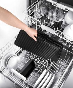 Hem plaka hem de yağ toplama kabı tamamen çıkarılabilir ve bulaşık makinesinde yıkanabilir.