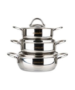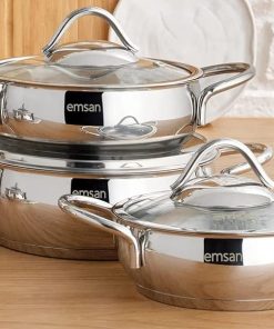 Yiyeceklerin vitamin ve mineral değerlerini kaybetmeden pişmelerini sağlayan Emsan Cemre 6 Parça Paslanmaz Çelik Sahan Seti.