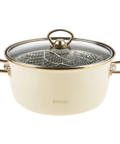 - Emaye dış materyal, dayanıklılığı artırarak tencerenin uzun süreli kullanımına olanak tanır ve şık bir görünüm kazandırır