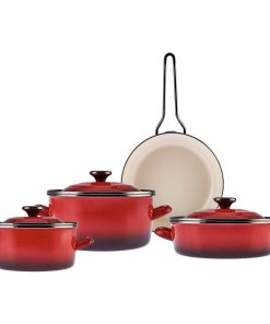 Emsan Pietra 7 Parça Emaye Tencere Seti Kırmızı
