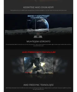 FreeSync teknolojisi, AMD ekran kartı ile senkronize edilerek oyun esnasında oluşan dalgalanmaların önüne geçer. Üst düzey pürüzsüz ve kaliteli görsel deneyime kavuşturarak her anlamda memnun kalacağınız bir performans vadeder.