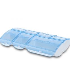 Haftalık ilaç saklama kabı plastik malzemeden üretilmiştir.