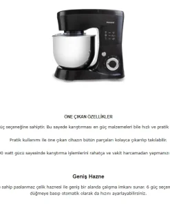- 1000 watt gücü sayesinde karıştırma işlemlerini rahatça ve vakit harcamadan yapmanızı sağlar.