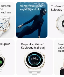 Seramik kasa, safir cam | 2 hafta pil ömrü | Tüm gün sağlık takibi