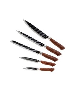 Şef bıçağı, et bıçağı ve ekmek bıçağı 1,8 mm kalınlığında çok amaçlı bıçak ve soyma bıçağı 1,2 mm kalınlığa sahiptir. Keserken yapışmayı önleyen kabartmalı gövde çeliktir. Non-Stick kaplamalı özel bıçak ağzı ile kolay kesim sağlar. Ara bağlantı yüzüğü çeliktir. Ahşap görünümlü silikon sapa sahiptir. Sünger benzeri sert olmayan temizleme araçları ve sıvı deterjanlar kullanılarak el ile yıkama önerilir. Sert gıdalar ile kesme işlemi yapıldığında bıçaklara zarar verilebilir.