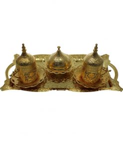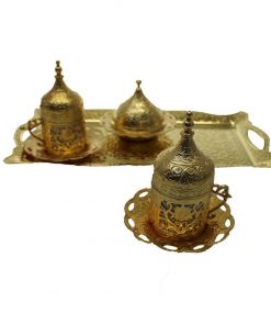 Kahve Fincan Takımı Osmanlı Motifli Bakır Türk Kahvesi Seti – Sarı Renk