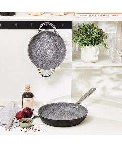 - Granit iç ve dış yüzeyi sayesinde yüksek ısı dağılımı sağlar, eşit pişirme deneyimi sunar