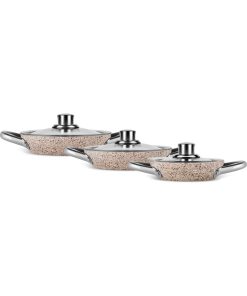 Karaca Biogranit Nare 6 Parça Sahan Seti Wood Set İçerik 16 cm Sahan (0,6 Lt) 18 cm Sahan (0,8 Lt) 20 cm Sahan (1 Lt) Malzeme: Granit Kaplama (İndüksiyon Ocak Kullanımına Uygun Değildir)