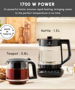 - Özellikler: İdeal çayı 15 dakikada demler.