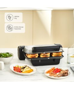 - 1800 watt gücü ve ızgara özelliği ile lezzetli tost, et, tavuk veya sebzelerinizi hızlıca hazırlayabilirsiniz.
