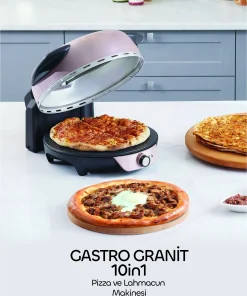 - Gastro 10in1 Pizza Makinesi, 1500 watt gücü sayesinde 400 derece sıcaklığa çıkarak sadece 5 dakikada hızlı ve taş fırın lezzetinde pizzalar yapmanızı sağlar.