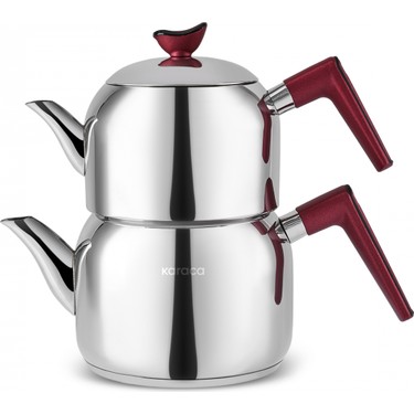Karaca Maçka Mini Çaydanlık Takımı 18/10 Paslanmaz Çelik, Bordo, 0,85 L Demlik + 1,25 L Suluk, Ergonomik Saplı ean : 8683650250630