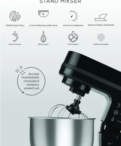 - 1500W motor gücü ile ideal çırpma, karıştırma ve yoğurma işlemlerini kolaylıkla gerçekleştirir.