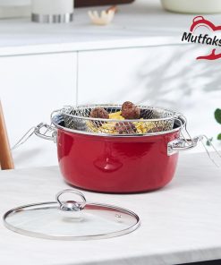 Karaca Mutfaksever İndüksiyon Tabanlı Emaye Kızartma Tenceresi 22 cm Kırmızı