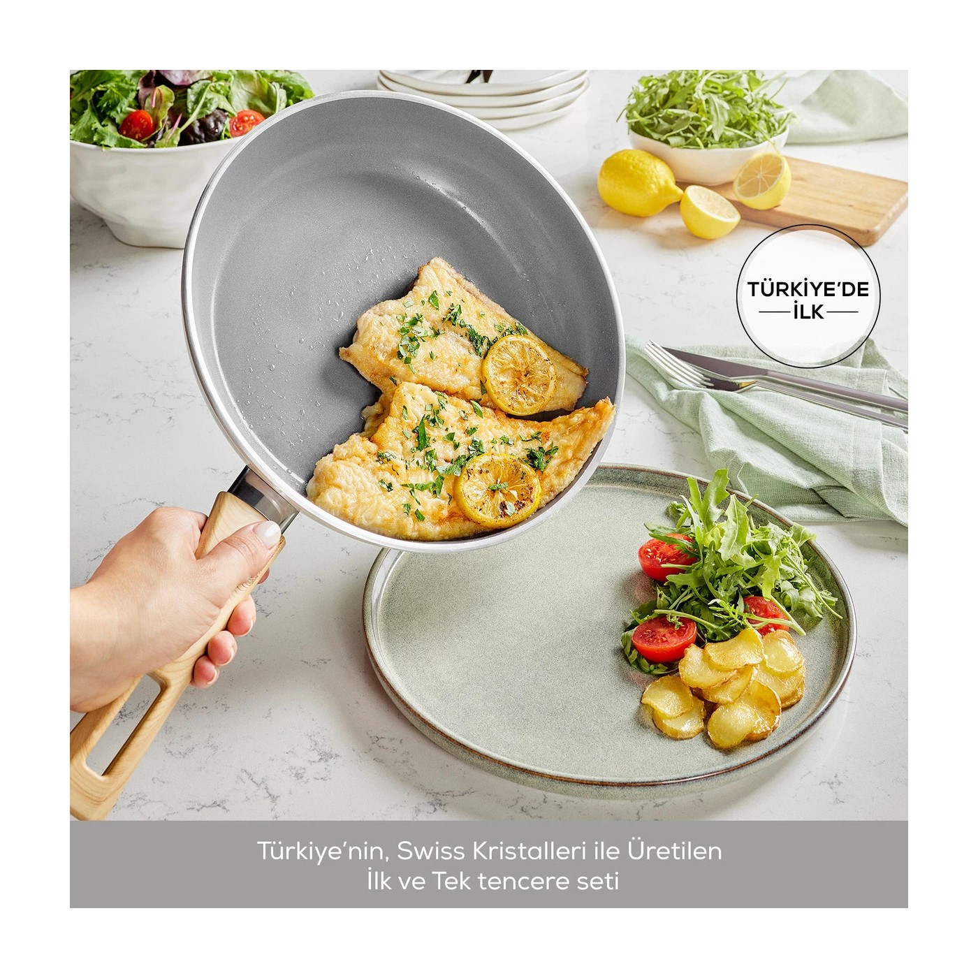 Karaca Refika Birgül Swiss Crystal 15 Parça Çeyiz Seti 26 cm Seramik Kaplama Derin Tencere Seti İndüksiyon ve Fırına Uygun Değil