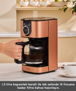 1,5 litre kapasiteli cam demliği sayesinde tek seferde 15 fincan kahve demleme kapasitesine sahiptir. Böylece aileniz ve arkadaşlarınızla filtre kahvenin keyfine varabilirsiniz. - Sıcak Tutma Özelliği