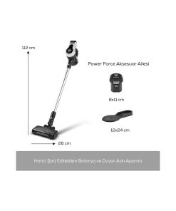- Kablosuz Vantuz Power Force, Powermax motor teknolojisi ile geliştirilmiştir. Pili ve turbo süpürge başlığı ile yüksek emiş gücüne sahiptir. Kolay ve zahmetsiz temizlik yapar.
