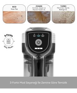3 farklı Güç Modu ile Zemine Göre Temizlik