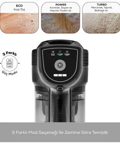 3 farklı Güç Modu ile Zemine Göre Temizlik