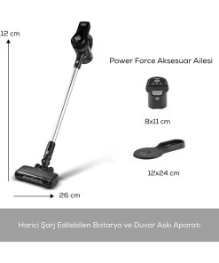 - Kablosuz Vantuz Power Force, Powermax motor teknolojisi ile geliştirilmiştir. Pili ve turbo süpürge başlığı ile yüksek emiş gücüne sahiptir. Kolay ve zahmetsiz temizlik yapar.