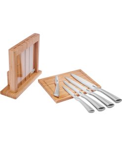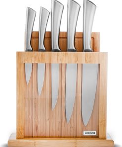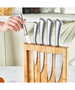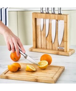 - Sap Uzunluğu: 11 cm) Blok ölçüsü: 28 x 9,5 x 24,7 cm Kesme Tahtası Ölçüsü: 28,2 x 20,5 x 1,8 cm Blok Materyali: Bambu + Akrilik Kesme Tahtası Materyali: Bambu Bıçak Materyali: 2CR13N/Performer Handle: 430 SS