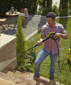 Cihaz, 30 m²/sa alan performansıyla orta düzey kirler üzerinde zaman zaman yapılan temizlikler için uygundur. Full Control basınçlı yıkama makinesi sayesinde her yüzey için doğru basıncı bulacaksınız. Basınç düzeyi, püskürtme namlusundan ayarlanır ve tetik tabancası üzerindeki LED ekrandan görüntülenebilir. Püskürtme namlusunu değiştirmeden yüksek basınçlı moddan deterjan moduna geçiş yapılabilir. Tetik tabancasına kolayca erişilebilir. Tetik tabancası, temizlik sırasında kısa aralıklarda püskürtme namlusuyla birlikte yerleştirilebilir. Yüksekliği ayarlanabilir teleskopik tutamak sayesinde cihazı rahat çekme yüksekliğinde kolayca hareket ettirebilir ve çok yer kaplamadan saklayabilirsiniz. Kullanımı kolay Plug ‘n’ Clean sistemiyle deterjanları kolay bir hareketle değiştirebilir ve deterjan seviyesini bir bakışta kontrol edebilirsiniz. Basınçlı yıkama makinesi ayrıca sahip olduğu düşük ağırlık merkezi ve taban sayesinde daha fazla denge ve pratik hortum kılavuzu sunar. Taban ikinci bir taşıma tutamağı olarak da kullanılarak cihazın rafa veya araç bagajına kaldırılmasını kolaylaştırır.