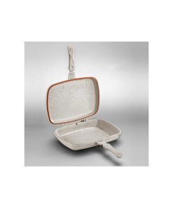 Ölçü: 34x25x8 cm Üst yükseklik: 3 cm Alt yükseklik: 5 cm Yüksek ısı iletimiyle enerji tasarrufu sağlayan alüminyum döküm gövde Ayrı iki tava olarak kullanma imkanı Yüksek ısıya dayanıklı, çıkarılabilir ve temizlenebilir silikon conta Zehirli gaz çıkarmadan pişirme (PFOA,kadyum veya kurşun içermez) Buhar çıkışını tek noktadan sağlayan mıknatıslı kilitleme sistemi İç ve dış yüzeylerde mükemmel yapışmazlık özelliğine sahip granit görünümlü PTFE kaplama Çizilmeye karşı ekstra direnç ve dayanım Yüksek ısıya dayanıklı bakalit kulp Geri dönüşümlü, tamamen doğal malzemeden, çevre dostu teknoloji ile üretilen Duplo çizilmeye karşı ekstra dirençli granit görünümlü iç ve dış kaplama ile çok az yağ kullanarak lezzetli yemekler yapar. Çift taraflı kapakları sayesinde balık, tavuk, et ve kızartma pişirmek için tek bir çevirme hareketi yeterli. Not: Yedek conta verilmektedir.