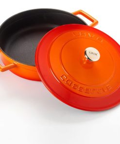 Lava Metal Döküm Çok Amaçlı Yayvan Tencere, Trendy, 24cm, 2.47 L, Turuncu