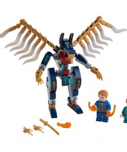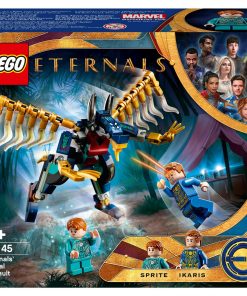 - 2 LEGO Marvel Eternals minifigürü Ikaris ve Sprite; hareketli kanatları, 2 sai kılıcı, 1 ninja kılıcı ve 2 güç silahı olan kötü bir Deviant figürüyle dur durak bilmeyen aksiyon için sahne hazır