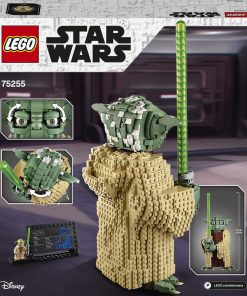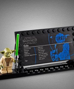 - İnce detayları, duruşu ayarlanabilir başı ve kaşları, hareketli el ve ayak parmakları, Yoda’nın yeşil Işın Kılıcı, ayrıca Jedi ustası hakkında bilgiler içeren bir levhası, Yoda Minifigürü ve kılıcı için bir standı bulunur