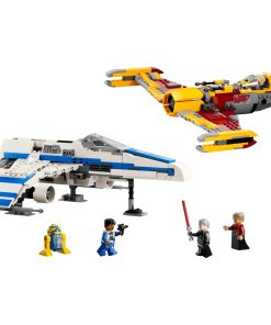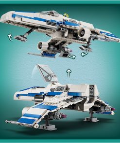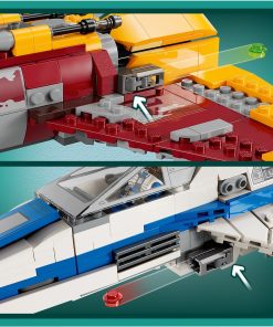- Yeni Republic E-Wing, açılan bir LEGO mini figür kokpitine, koltuğun arkasında bir blaster silahı için yere, droid için kokpitin arkasında yere, 2 mermi atıcıya ve kapanabilen iniş takımına sahiptir