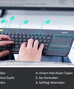3,5 inçlik bir dokunmatik yüzey ile gezinmeyi kolaylaştıran bu tasarım, mouse ve klavye karmaşasını da ortadan kaldırır. İnternete bağlanan her cihaz ile etkileşim sağlayan Logitech K400 Plus Touch kablosuz klavye, profesyonel bir izleme deneyimi sunar.